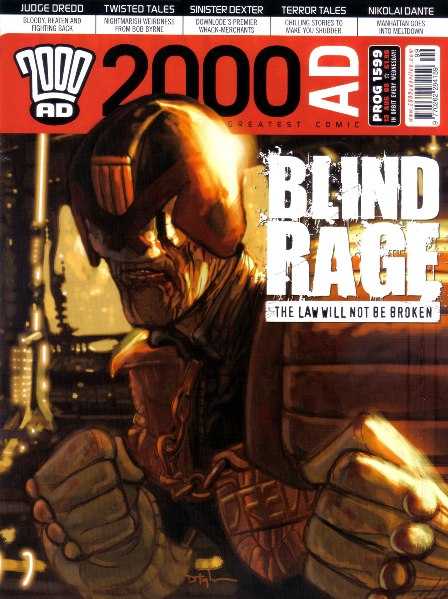 Judge Dredd - Blindside (part 4 - final part) (Robbie Morrison - Richard Elson)Bob Byrne's Twisted Tales - Tale 6 (Bob Byrne)Sinister Dexter - The Importance of Fleeing Ernest (part 5 - final part) (Dan Abnett - Anthony Williams)Terror Tales! - Futurity (Arthur Wyatt - Cliff Robinson)Nikolai Dante - Amerika (part 11 - final part) (Robbie Morrison - Simon Fraser)2000 AD (1977)