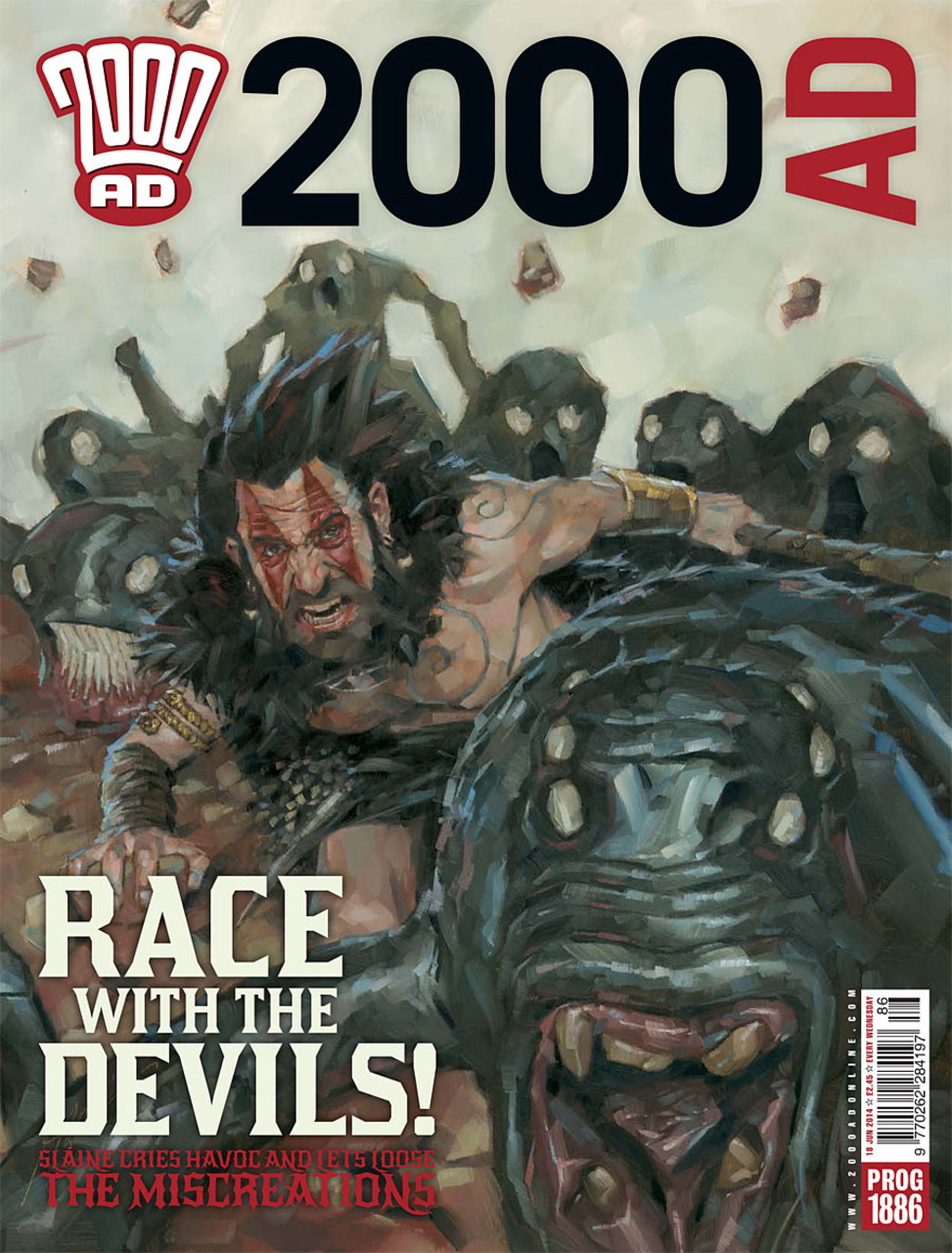 Cover: Simon Davis (Slaine)Judge Dredd – Traumatown (part 4) (Michael Carroll – Nick Percival)Terror Tales - Done Deal (Alec Worley - Tom Foster)Slaine: The Brutania Chronicles - A Simple Killing (part 13 - final part) Pat Mills - Simon Davis)Grey Ar ...