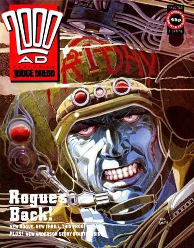 Cover: Ron Smith (Friday)Rogue Trooper (Friday) - The Golden Fox Rebellion (part 1) (Michael Fleisher - Ron Smith)Tharg's Future Shocks - Digby Tench, Come on Down! (Brian Williamson - Simon Jacob)Judge Dredd - Death Aid (part 2) (Garth Ennis - Carlos Ez ...