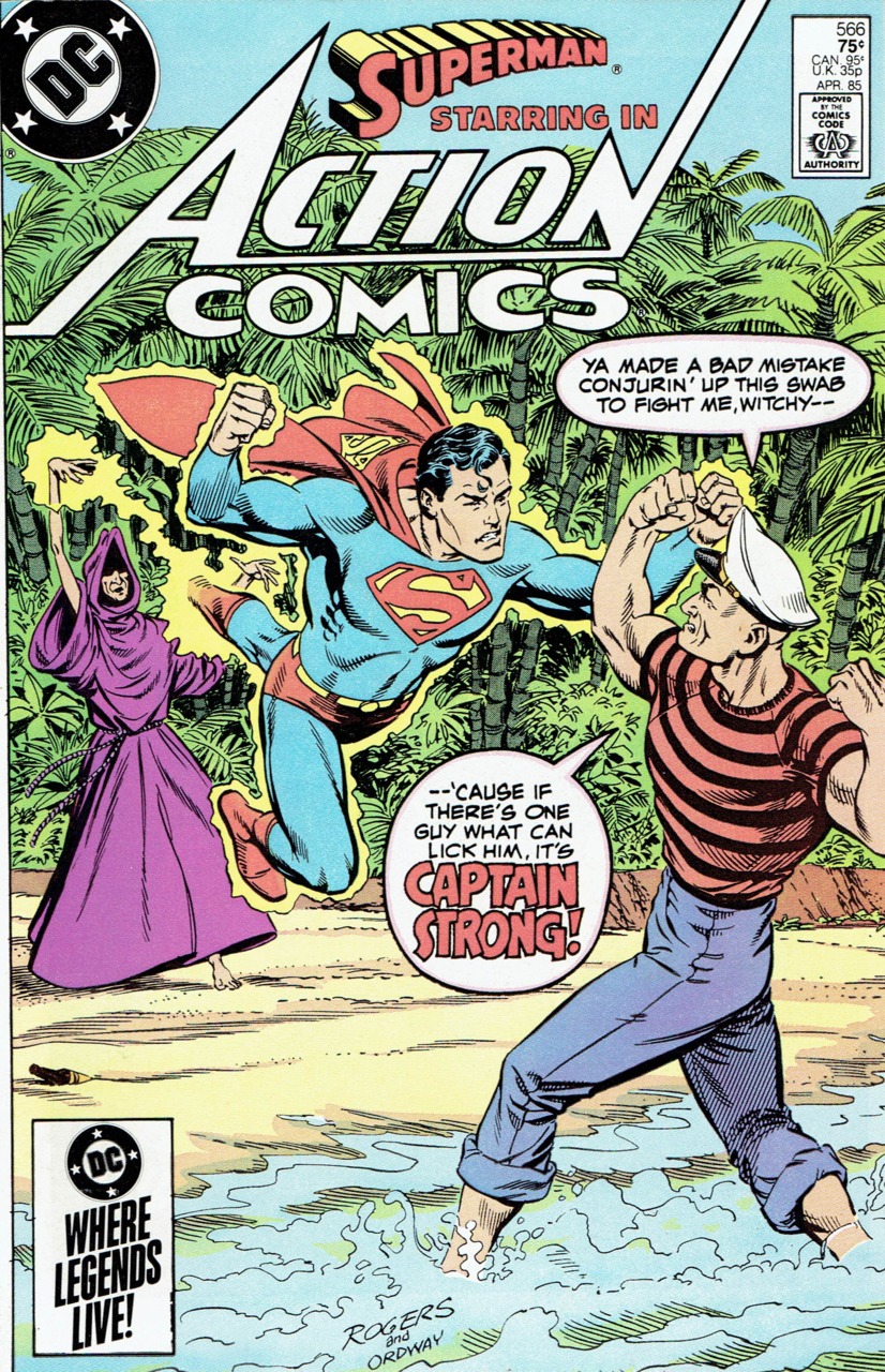 Cover by Marshall Rogers and Jerry Ordway."Traumas in the Bahamas!" written by Craig Boldman, penciled by Ron Randall, inked by Karl Kesel, colored by Gene D'Angelo and lettered by Ben Oda. (Superman, Lois Lane, Jimmy Olsen, Captain Strong and Olivia Strong)"With Love from Superman!" written by Mindy Newell, penciled by Howard Bender, inked by Bob Oksner, colored by Gene D'Angelo and lettered by Milt Snapinn. A girl daydreams of meeting Superman, pretending to be Lois and Supergirl; with a cameo by Lex Luthor and Bloom County's Opus!Captain Strong: Ya made a bad mistake conjurin' up this swab to fight me, witchy-- --cause if there's one guy that can lick him, it's Captain Strong!