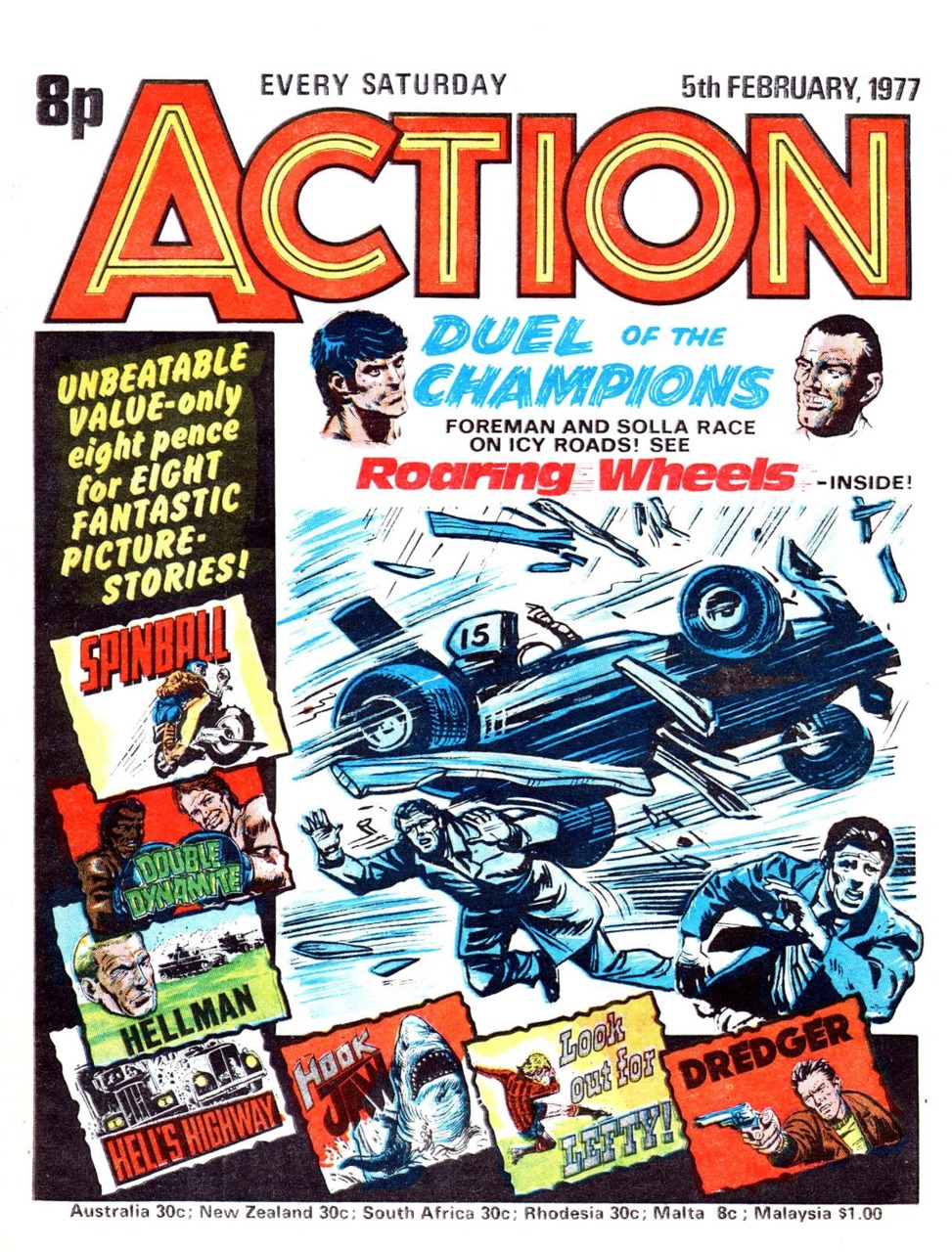 Action was a controversal weekly British comic published by IPC Magazines. It ran for 36 issues before IPC suspended the publication for 6 weeks due to pressure from the media. When it returned most of the violence was watered down or removed altogether. It then lasted for a further 50 issues before merging with Battle Picture Weekly in November 1977.