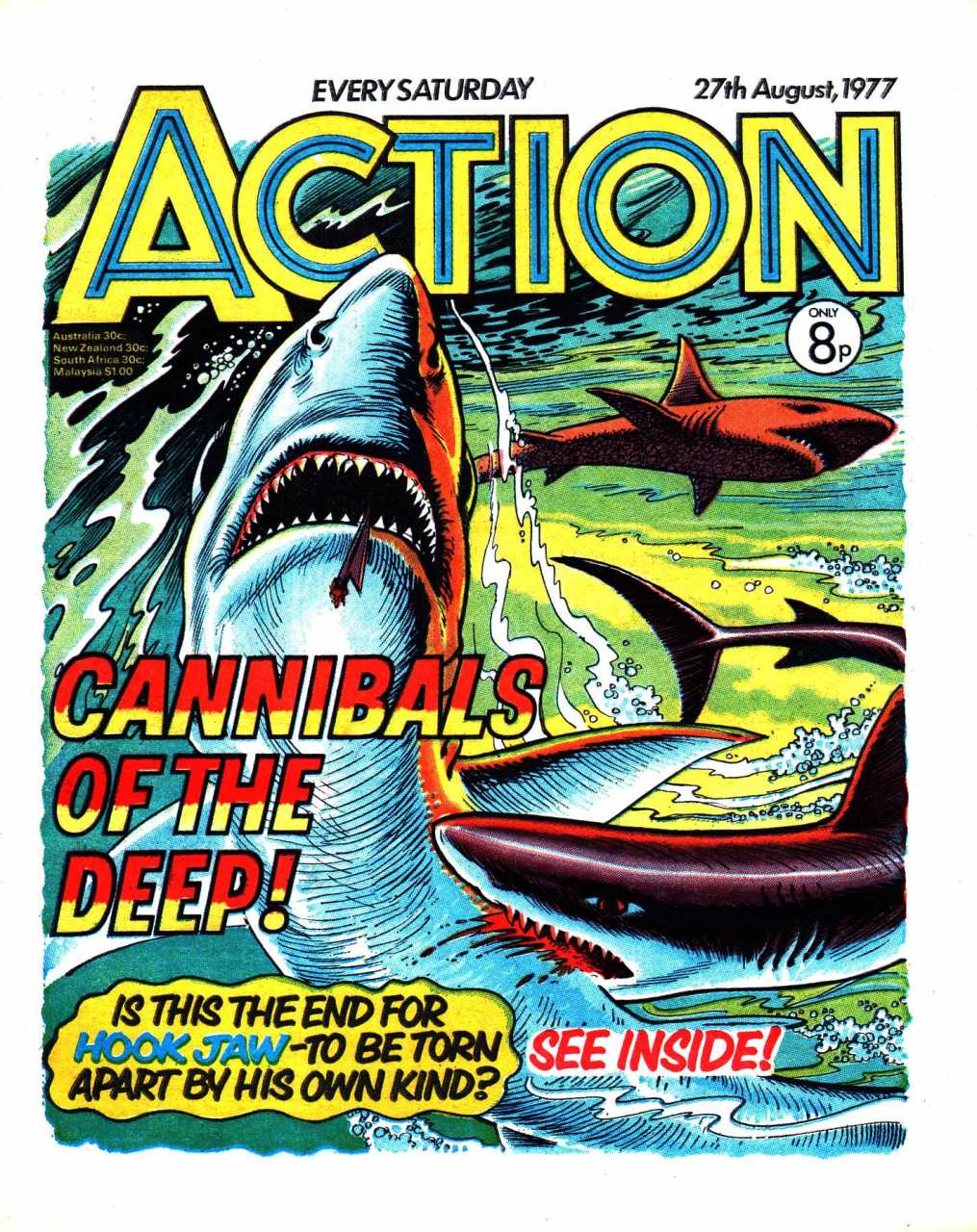 Action was a controversal weekly British comic published by IPC Magazines. It ran for 36 issues before IPC suspended the publication for 6 weeks due to pressure from the media. When it returned most of the violence was watered down or removed altogether. It then lasted for a further 50 issues before merging with Battle Picture Weekly in November 1977.