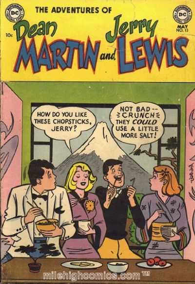 The Adventures of Dean Martin & Jerry Lewis ("and" on the cover, "&" in the indicia") was a humor comic published by DC from 1952-1957, spanning forty issues, featuring the real-life comedy duo of Martin and Lewis. Martin being the "straight man" and Lewis the "comedic foil", following the group's actual break-up, the series dropped Dean Martin and continued the comedic escapades of Jerry Lewis as The Adventures of Jerry Lewis which ran for another eighty-four more issues.