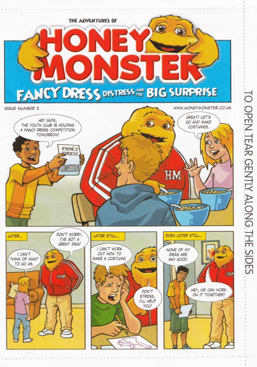 Series of three Honey Monster comics, given away free with Sugar Puffs cereal, in the UK, in 2009. Issue 2 - Fancy dress distress and the big surprise.