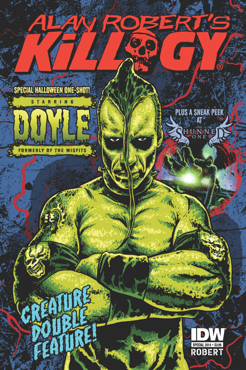 The critically acclaimed horror/comedy and soon-to-be animated series is back with a vengeance with a special Halloween one-shot! Devilocked horror punk Doyle Wolfgang von Frankenstein (formerly of the Misfits) stomps through the apocalypse like you’ve never seen him before! Written and illustrated by rock star-turned-comics creator Alan Robert (Crawl to Me), this issue also includes a 10-page first look at his much-anticipated miniseries The Shunned One, coming soon!