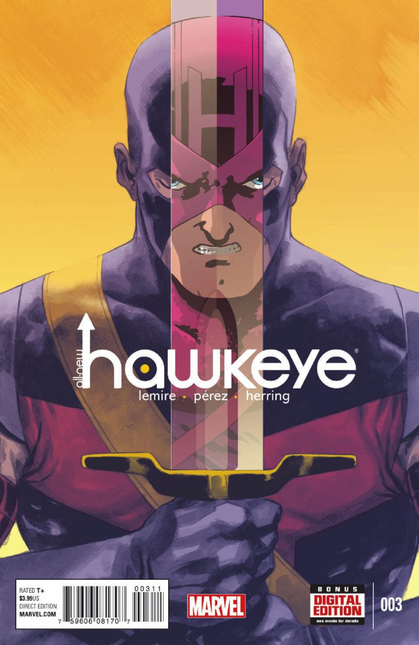 What makes a hero and what breaks a hero? Hawkeye and Hawkeye experience both. In ONE GLORIOUSLY BEAUTIFUL ISSUE! Jeff Lemire and Ramon Perez bring you the hotly anticipated series of the season.List of covers and their creators:CoverNameCreator(s)Sideba ...