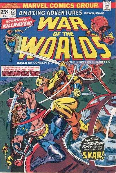 Amazing Adventures began life as another of Marvel's tried and tested "double feature" comics - in the mould of Tales of Suspense / Tales to Astonish. Its original features were the Inhumans and Black Widow. However, this dual feature lasted only 8 issues, before the headline feature became "Black Bolt and the Inhumans" for a further 2 issues. Then, from the pages of the X-Men (who at this time did not have their own book) came "The Beast", who took centre stage for the next 7 issues before super heroes gave way to space fantasy with "War of the Worlds", where the hero Killraven, Warrior of the Worlds, made his debut. His series filled in the remaining 22 issues of the title.