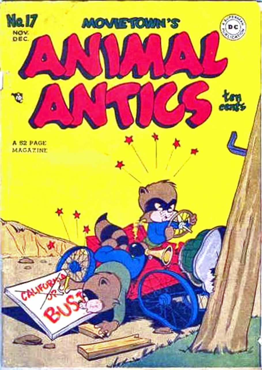 In 1946 a new DC Funny Animal title hit the stands alongside Funny Stuff and Real Screen Comics. Animal Antics starred Presto Pete, a magician's rabbit who performed his own tricks with disastrous results. Other characters getting their tryouts in this title were; Walrus Whopper, and Sheriff Corky. However it was Otto Feuer's Raccoon Kids who proved so well liked that they would take over as Animal Antics' lead feature with issue# 6. The comic was renamed Raccoon Kids in 1954.
