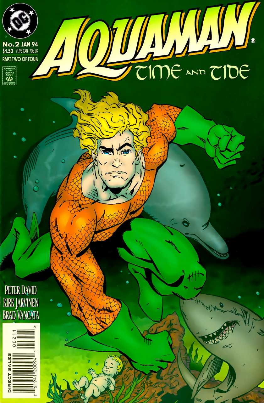 Left on a reef to die, the infant Aquaman uses his strange powers to survive in what proves to be his first tentative step toward becoming the true King of the Seas. This tale reveals how Aquaman was raised by dolphins and tells of the role he played in a war between them and the deadly sharks. And along the way, he sees his first surface human.