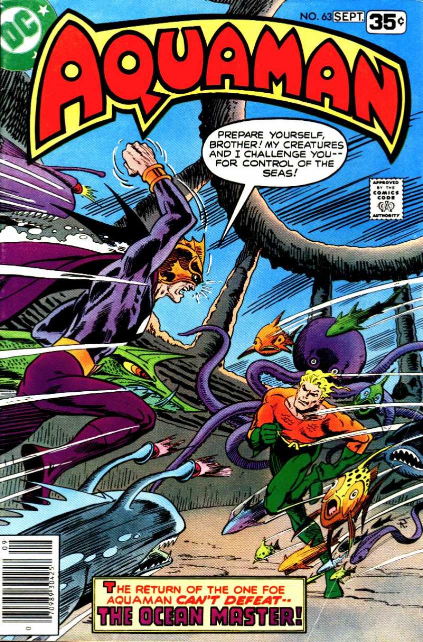 The Ocean Master exits from his crashed vessel, only to find Aquaman bearing down on him. Aquaman commands the same octopi to take hold of the Ocean Master, binding him with their tentacles. This time, though, Aquaman's telepathic powers generate a piercing feedback that nearly drive the Sea King into unconsciousness. The surrounding waters around ancient Atlantis are suddenly teeming with strange, mutated sea life. Somehow, their immunity to Aquaman's telepathic control is creating the psychic feedback. Aquaman issues one final call to arms, and pits his marine life army against the ancient, marauding fish. In the melee, Ocean Master breaks away, and, quickly ferrets out the ancient Atlantean super weapon. Turning the weapon on Aquaman, the monarch of the seas feels his will slowly being subjugated. Unlike other men, though, Aquaman's will is indomitable. He resists the weapon's effects and jumps the Ocean Master. This time the Ocean Master can offer no defense, as his older brother lands blow, after blow, after blow, until the Ocean Master succumbs. Dragging his defeated brother out of the fissure, Aquaman is met by his wife, Mera, and Aqualad. The young hero declares his intention to rejoin Aquaman, as his sidekick. Unaware of the passing of Aquaman's and Mera's infant son, Arthur, Jr., an innocent inquiry from the teen hero opens fresh emotional wounds. As Aquaman moves to comfort his wife, Aqualad wanders away, realizing that it is not yet the time from him to resume his place at Aquaman's side.