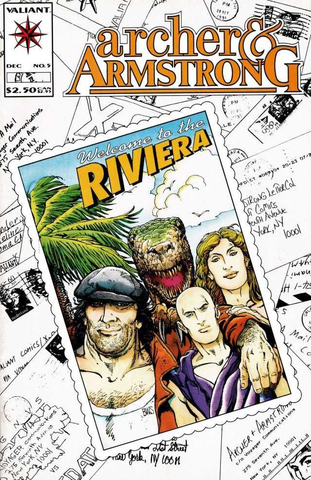 Archer & Armstrong take a break from the road and rest up in Armstrong's house on the French Riviera. Archer will find himself flustered when he meets Armstrong's beautiful wife (and possible Greek goddess) Andromeda. But he'll find himself even more terrified when he meets her pet— a carnivorous dinosaur named Flo! He'll have to hope neither one is a man-eater! to stop them!