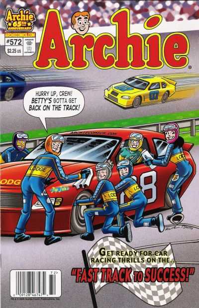 'The Fast Track to Success': Move over Danica Patrick! You've got nothing on Betty Cooper, and Indianapolis has nothing on the Riverdale 500! Mr. Lodge is the proud sponsor of one of the swiftest motor sports teams around, but his pride runs out of gas when one of his rivals lures away his top driver and pit crew! Not to worry though: Betty Cooper has offered to get behind the wheel, with Archie and the gang as her makeshift pit crew! Does Betty have what it takes to out-race the overconfident male drivers? Rev up your engines for action and excitement in this fast-paced tale!Archie (1960)
