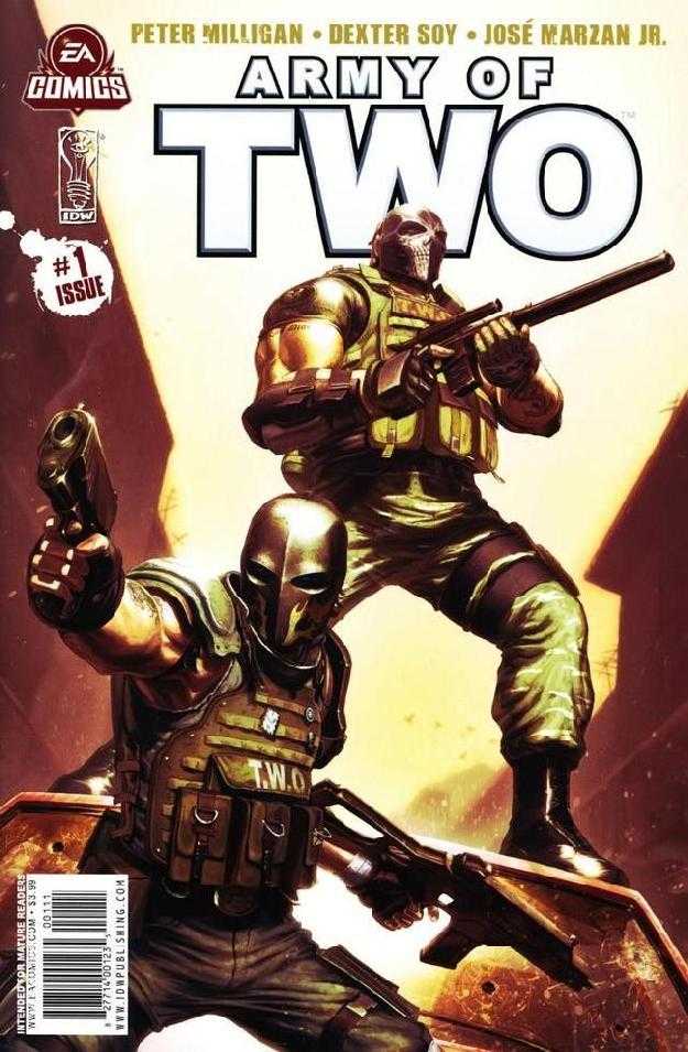 Coinciding with the release Army of Two: The 40th Day, this new ongoing monthly series, written by comics veteran Peter Milligan (X-Statix, Greek Street), follows ex-Army Rangers Salem and Rios as they form their own Private Military Corporation: Trans World Operations. But the pair get more than they bargained for as they are unexpectedly caught in a brewing war between the Mexican Army, drug cartels, and The Maras-one of the most powerful street gangs in Mexico!Army of Two (2010)