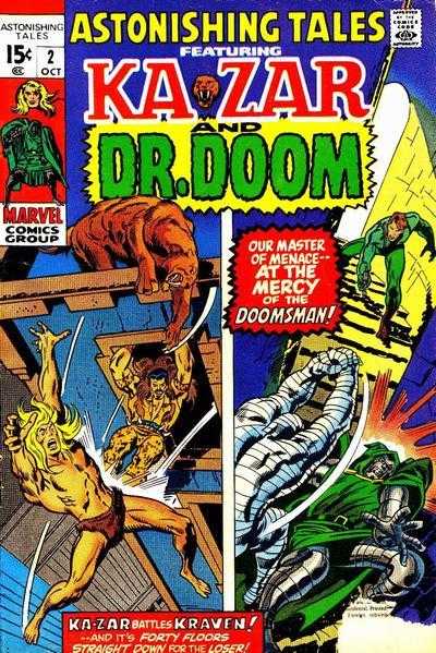 The line up of features in Astonishing Tales changed several times. Starting by featuring Ka-Zar and Doctor Doom, ( Imitating the succesful formulas of Suspense and Astonish) The double feature lasted only 8 issues, before KA-Zar took over upto issue #20. Following 4 issues of IT - the Living Collosus, the remaining issues featured Deathlock the Demolisher (apart from #29, which was a reprint comic starring the Guardians of the Galaxy).