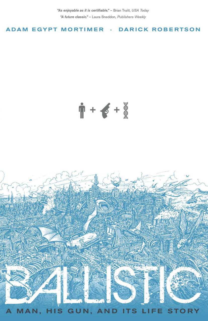Darick Roberts (Happy, The Boys, Transmetropolitan) and Adam Egypt Mortimer's madcap, psychedelic, transreal buddy adventure about Butch and his best friend Gun, a drug-addicted, genetically-modified, foul-mouthed firearm, as they attempt to elevate Butch from air conditioner repairman to master criminal in the twisted, post-eco-apocalyptic Repo City State, a reclaimed trash island built entirely from DNA-based living technology with bad attitudes. Don't miss this masterwork that it's finally collected into one mind-bending book!