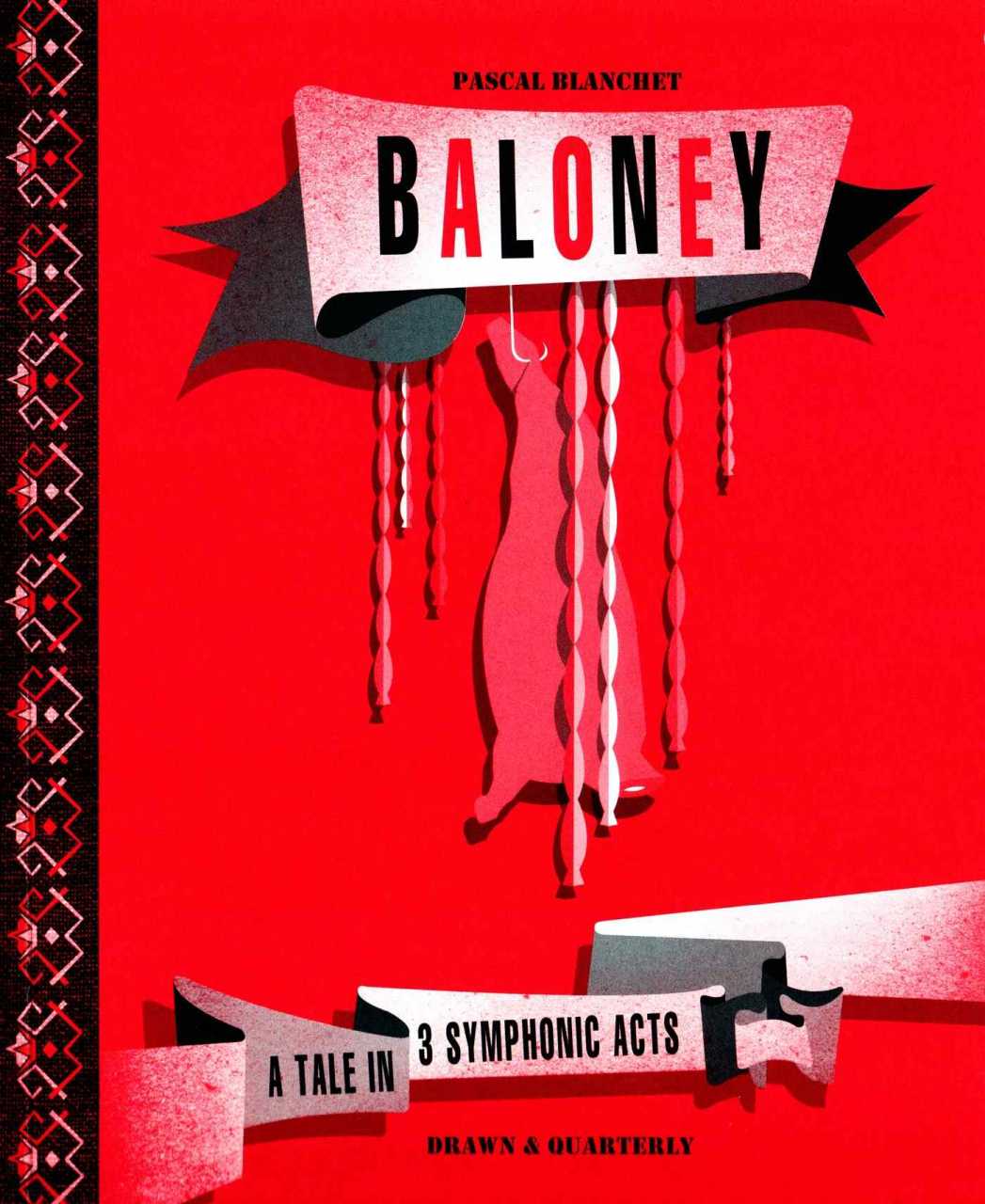 Following White Rapids - named Best Comic of 2007 by The Onion - Pascal Blanchet brings us Baloney. Winds swirl and darkness reigns over a hamlet perched atop a craggy peak. Russian fatalism sets the tone as Blanchet orchestrates the tale of a village butcher, his disabled daughter, and her tutor in their doomed uprising against the swaggering Duke Shostakov, local governor and owner of the only heating company in town. In a graphic novel about love and despair that is also a homage to the music of the 1930s and '40s, double bassists and trombonists lean into the frame, striking up a score that blends vaudeville with Kurt Weill and Russia's great modern composers. Rendered in two-color, red-and-black chiaroscuro, light struggles to emerge from darkness and endurance makes way for heroism, all to no avail. Read Baloney as a reverie composed to the melodies of Prokofiev and Shostakovich - a beautiful conjuring of moods, or a call to arms against the exorbitant utility rates.