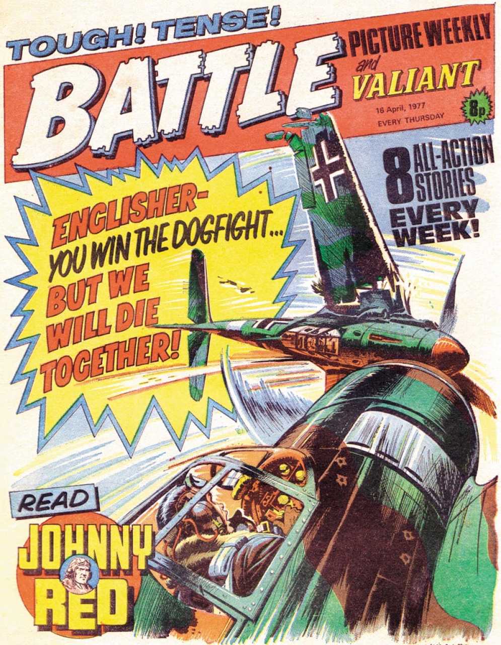 Battle was a weekly British publication for boys with stories about war. There were 664* weekly issues (from 1975 to 1988) until the title merged with Eagle (issue 306).