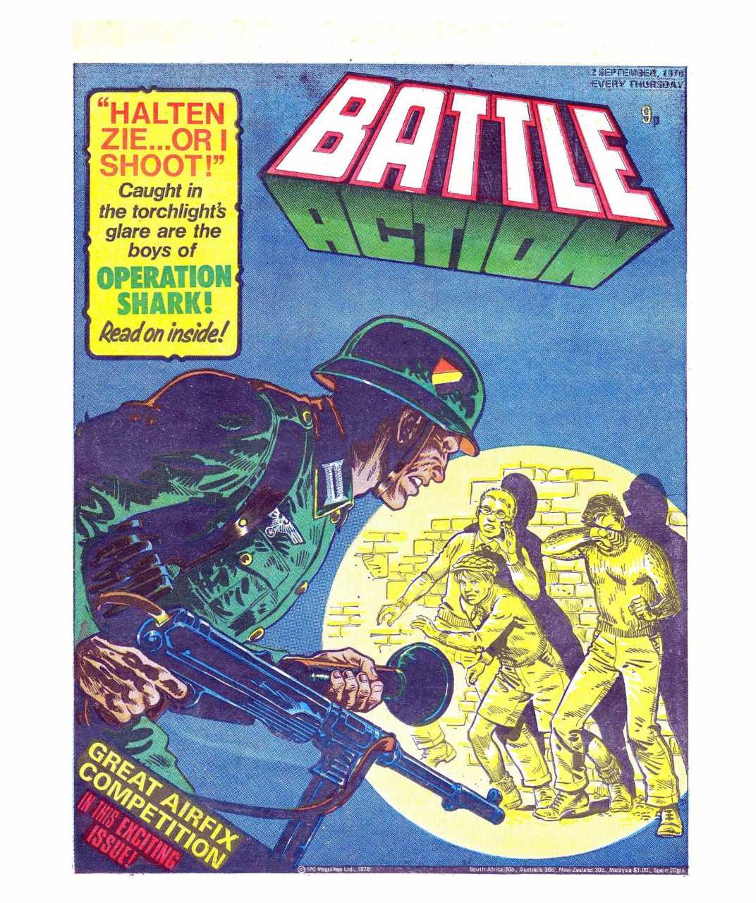 Battle was a weekly British publication for boys with stories about war. There were 664* weekly issues (from 1975 to 1988) until the title merged with Eagle (issue 306).