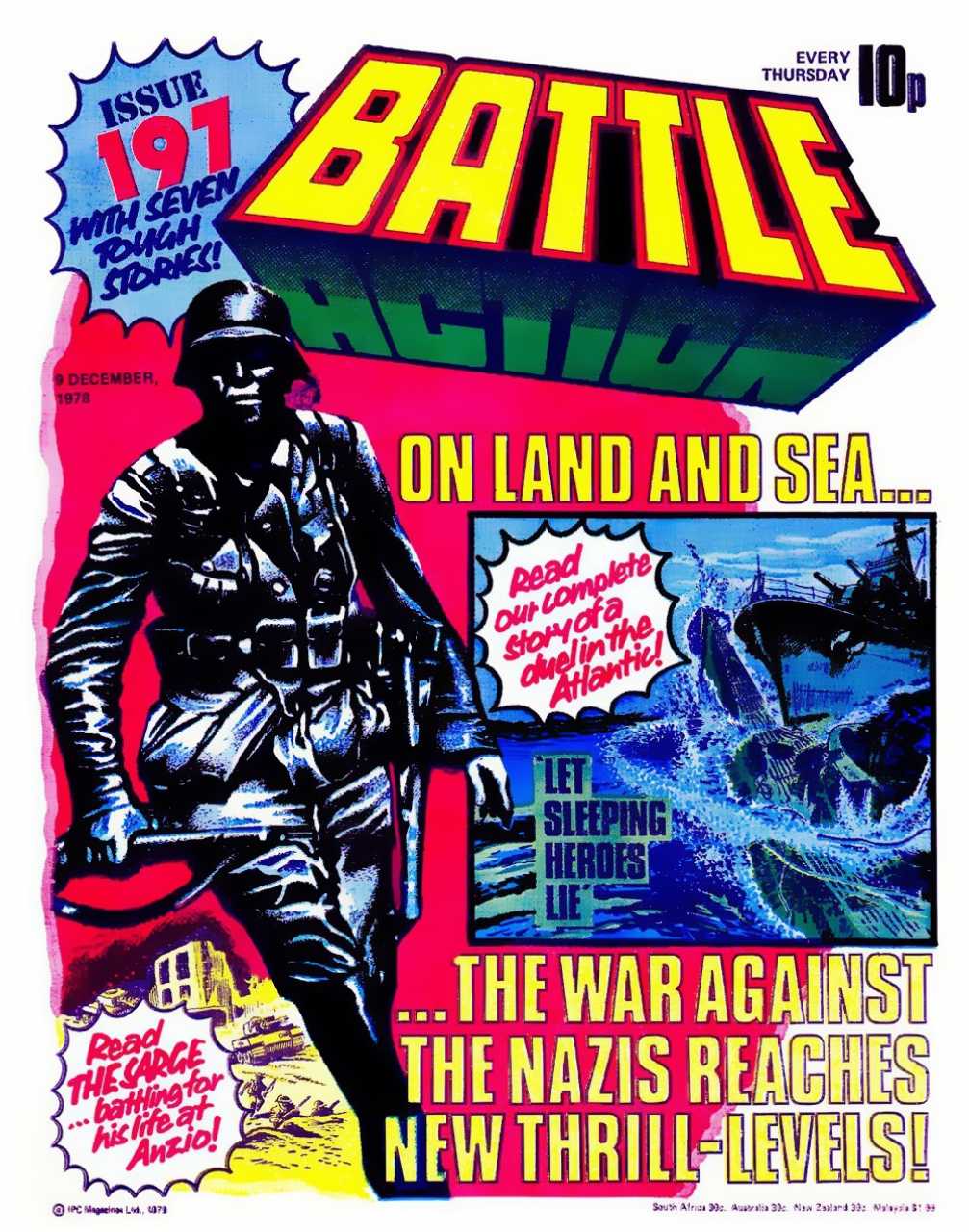 Battle was a weekly British publication for boys with stories about war. There were 664* weekly issues (from 1975 to 1988) until the title merged with Eagle (issue 306).