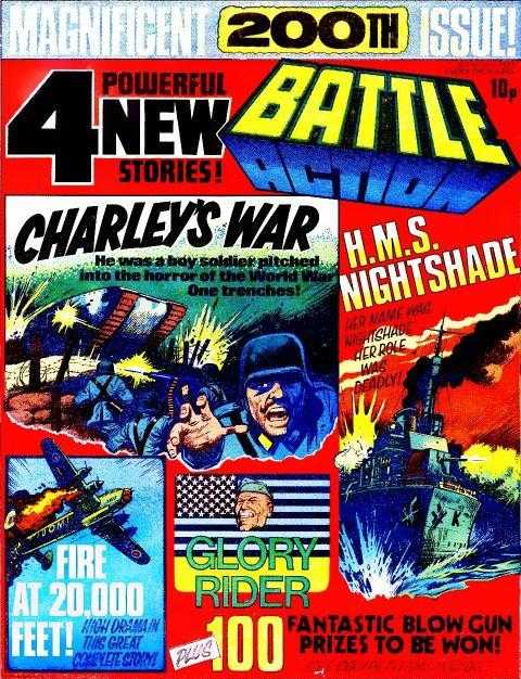 Battle was a weekly British publication for boys with stories about war. There were 664* weekly issues (from 1975 to 1988) until the title merged with Eagle (issue 306).