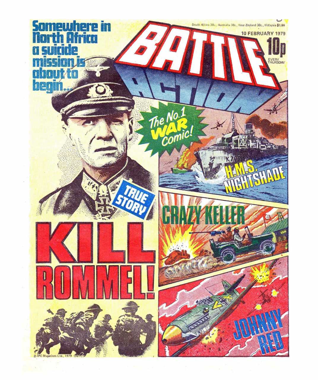 Battle was a weekly British publication for boys with stories about war. There were 664* weekly issues (from 1975 to 1988) until the title merged with Eagle (issue 306).