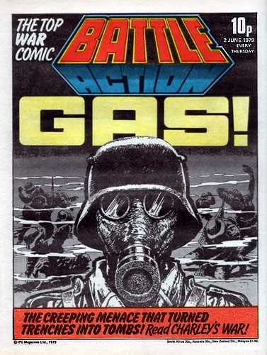 Battle was a weekly British publication for boys with stories about war. There were 664* weekly issues (from 1975 to 1988) until the title merged with Eagle (issue 306).