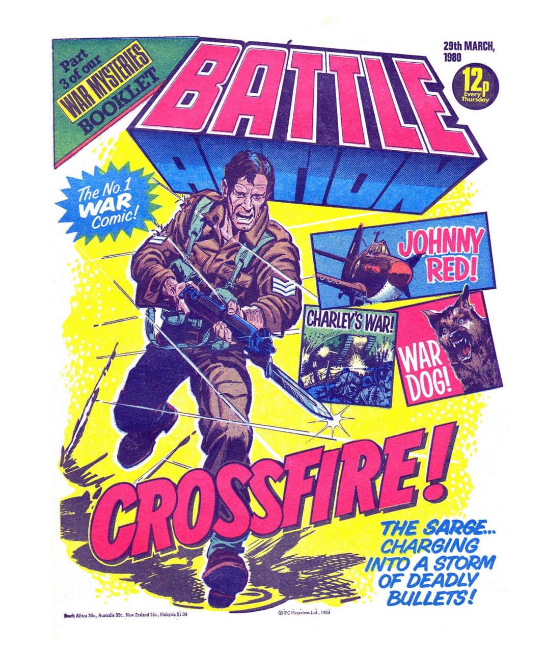 Battle was a weekly British publication for boys with stories about war. There were 664* weekly issues (from 1975 to 1988) until the title merged with Eagle (issue 306).