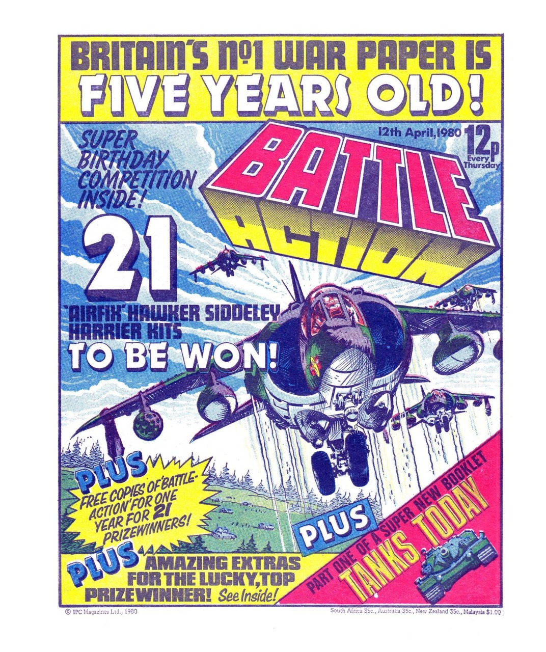 Battle was a weekly British publication for boys with stories about war. There were 664* weekly issues (from 1975 to 1988) until the title merged with Eagle (issue 306).