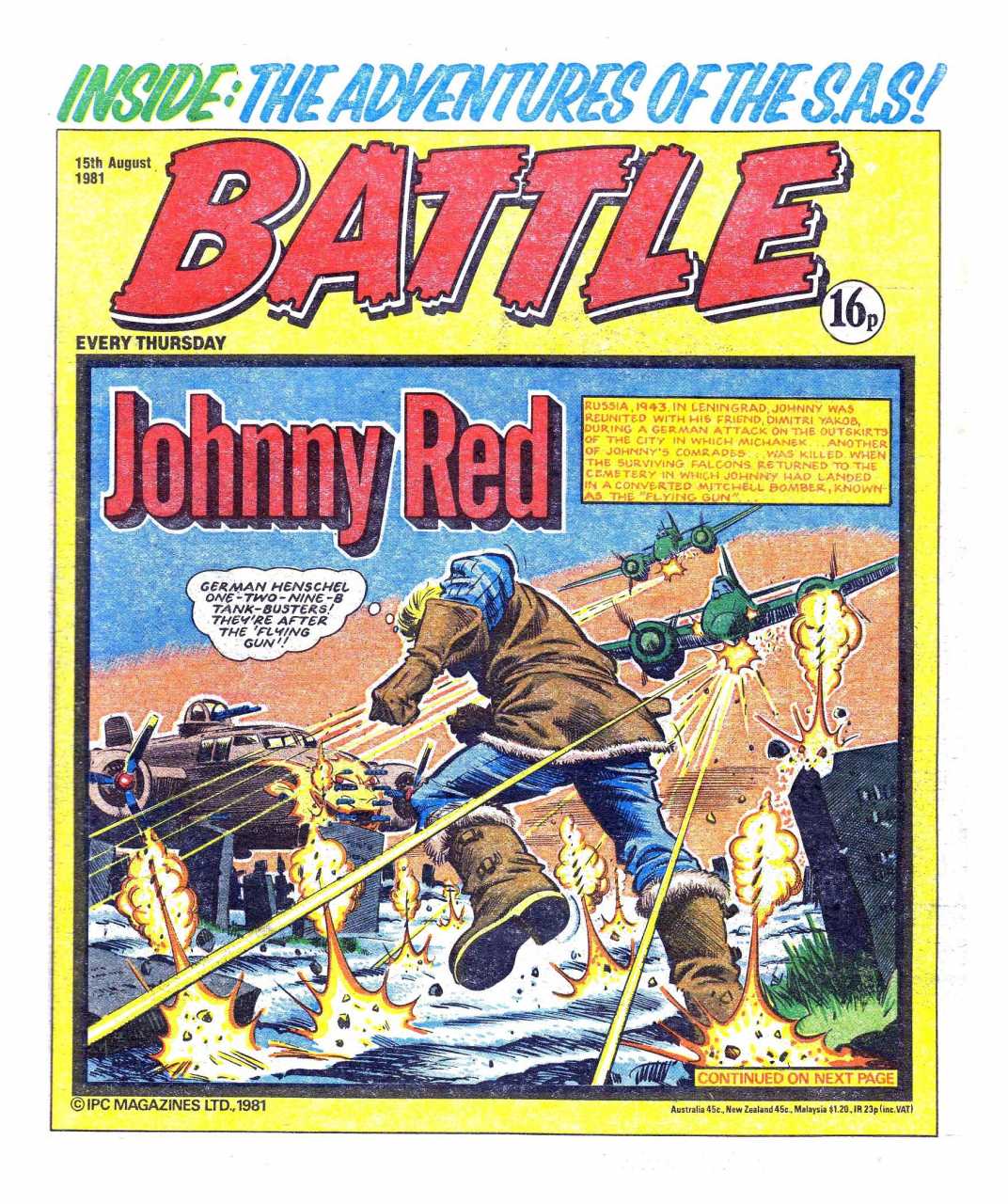 Battle was a weekly British publication for boys with stories about war. There were 664* weekly issues (from 1975 to 1988) until the title merged with Eagle (issue 306).