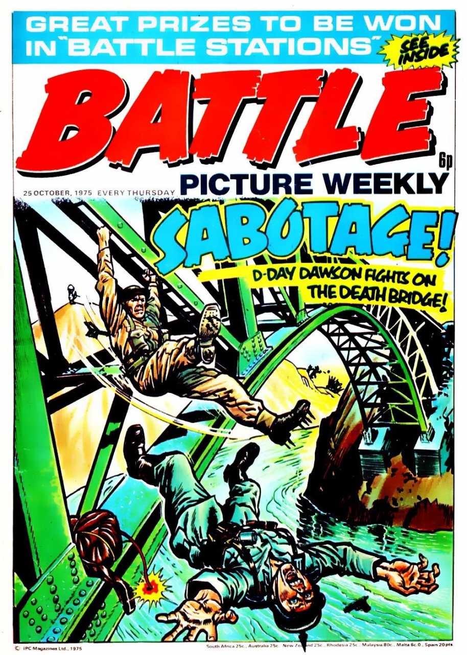 Battle was a weekly British publication for boys with stories about war. There were 664* weekly issues (from 1975 to 1988) until the title merged with Eagle (issue 306).