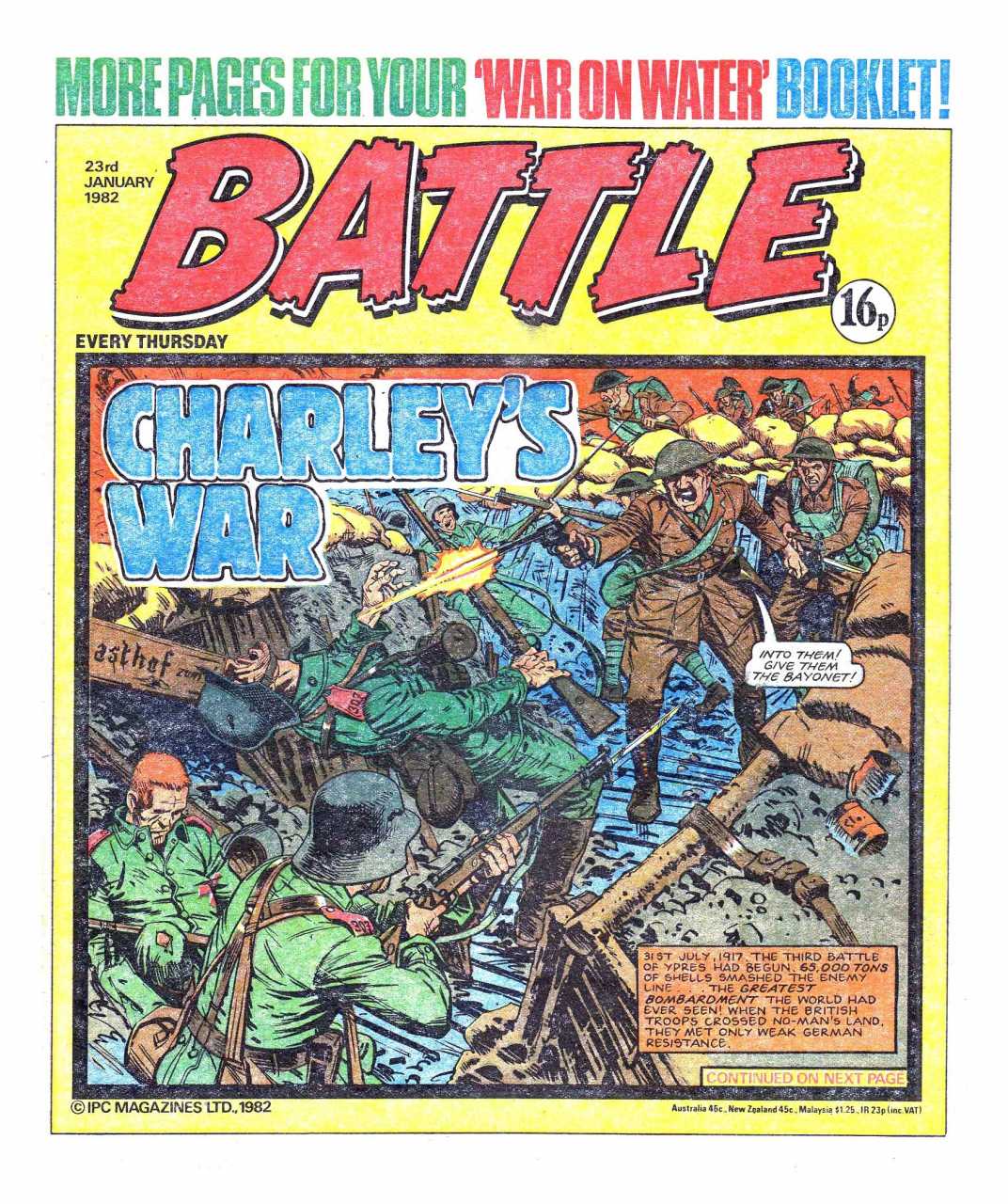 Battle was a weekly British publication for boys with stories about war. There were 664* weekly issues (from 1975 to 1988) until the title merged with Eagle (issue 306).