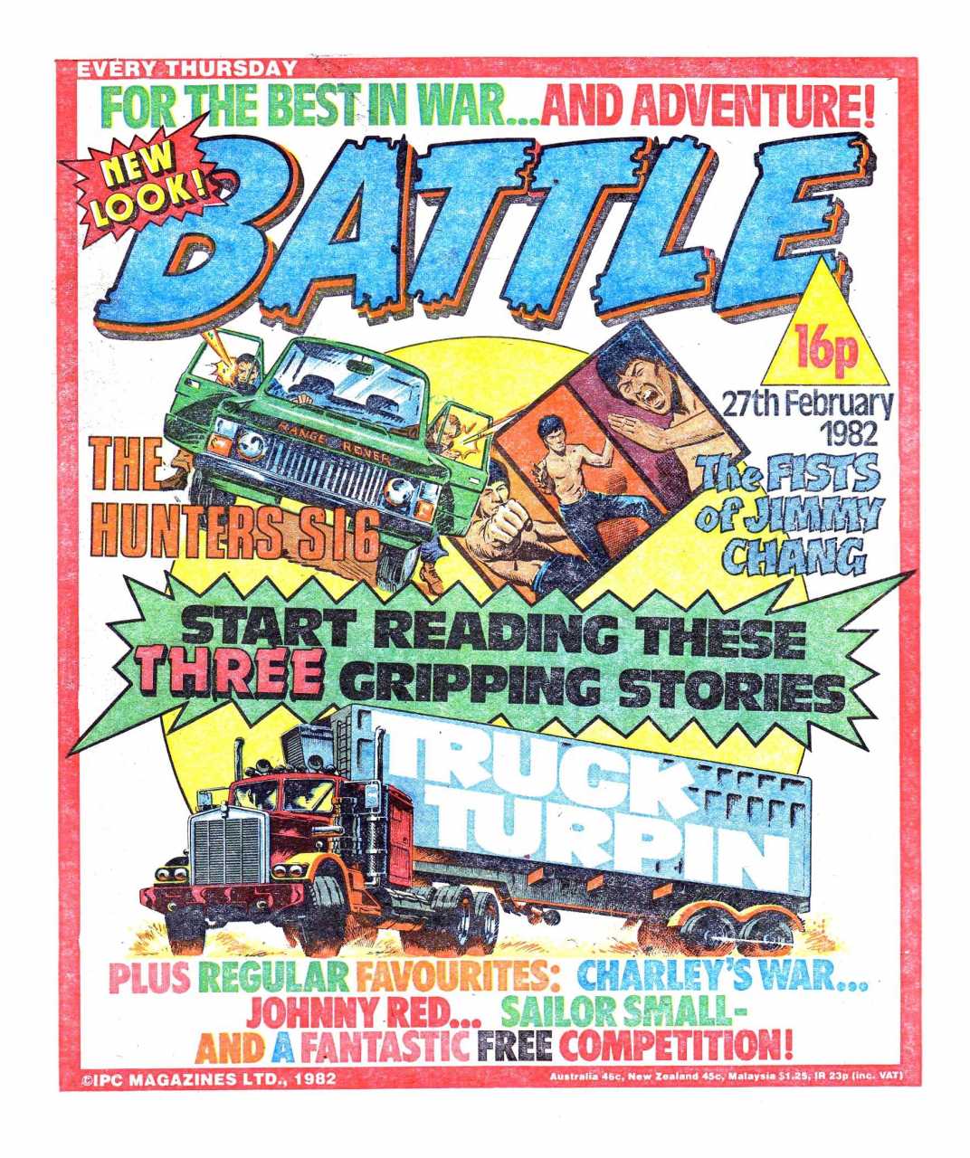 Battle was a weekly British publication for boys with stories about war. There were 664* weekly issues (from 1975 to 1988) until the title merged with Eagle (issue 306).
