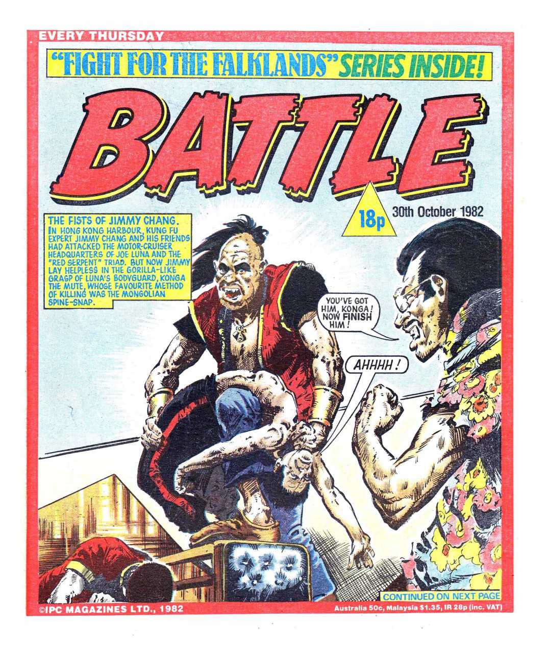 Battle was a weekly British publication for boys with stories about war. There were 664* weekly issues (from 1975 to 1988) until the title merged with Eagle (issue 306).