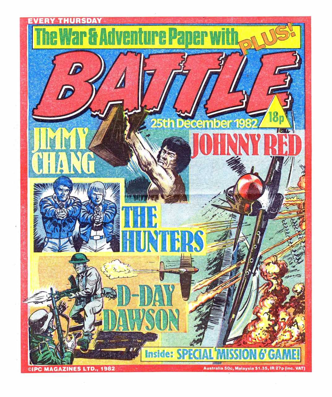 Battle was a weekly British publication for boys with stories about war. There were 664* weekly issues (from 1975 to 1988) until the title merged with Eagle (issue 306).