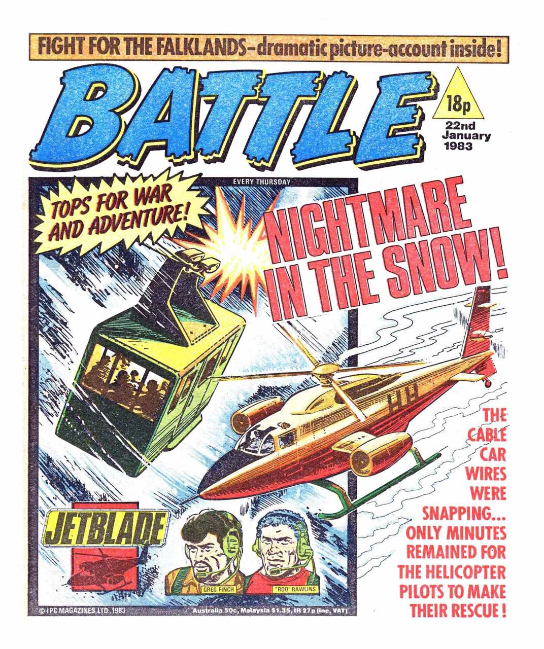 Battle was a weekly British publication for boys with stories about war. There were 664* weekly issues (from 1975 to 1988) until the title merged with Eagle (issue 306).