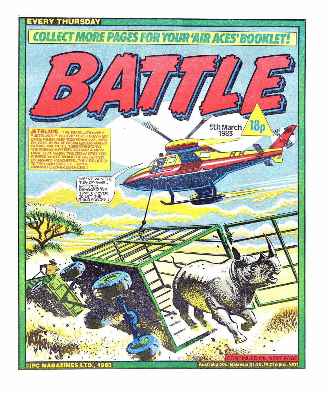 Battle was a weekly British publication for boys with stories about war. There were 664* weekly issues (from 1975 to 1988) until the title merged with Eagle (issue 306).