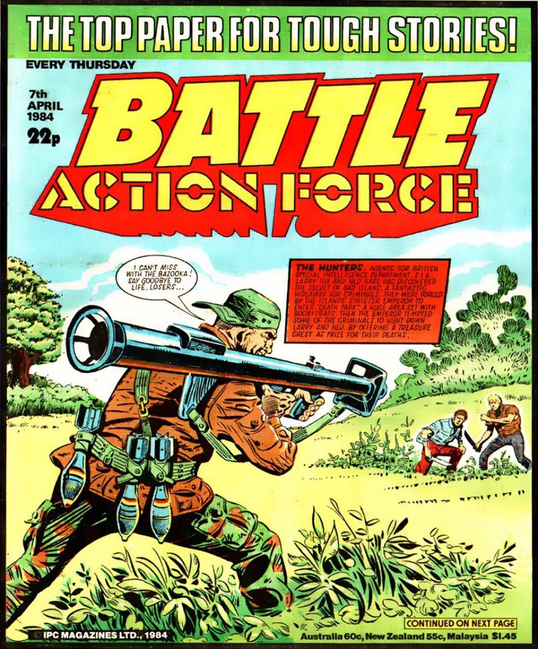 Battle was a weekly British publication for boys with stories about war. There were 664* weekly issues (from 1975 to 1988) until the title merged with Eagle (issue 306).