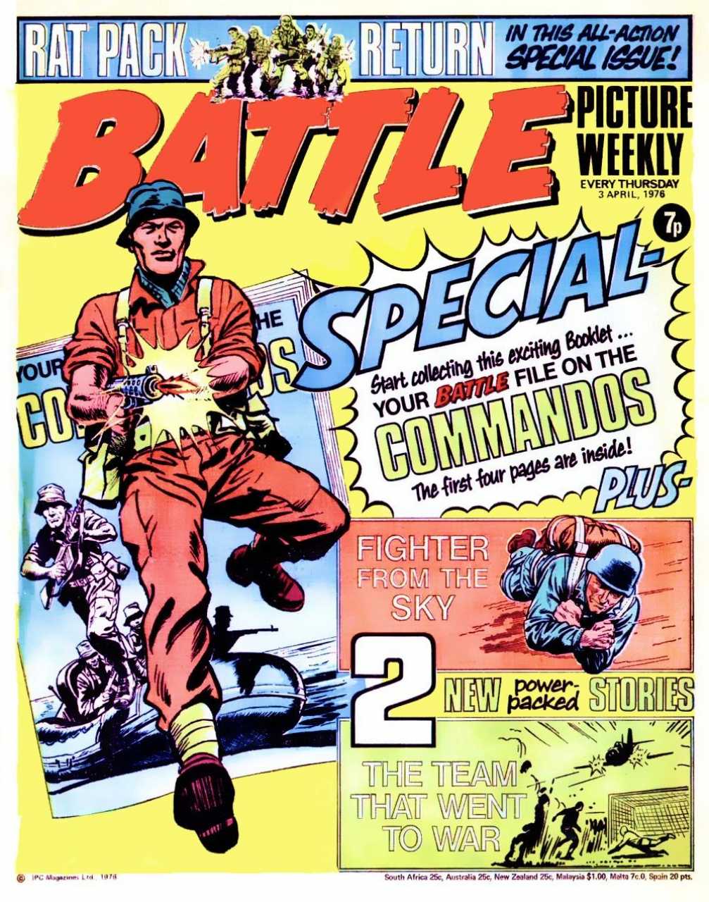 Battle was a weekly British publication for boys with stories about war. There were 664* weekly issues (from 1975 to 1988) until the title merged with Eagle (issue 306).