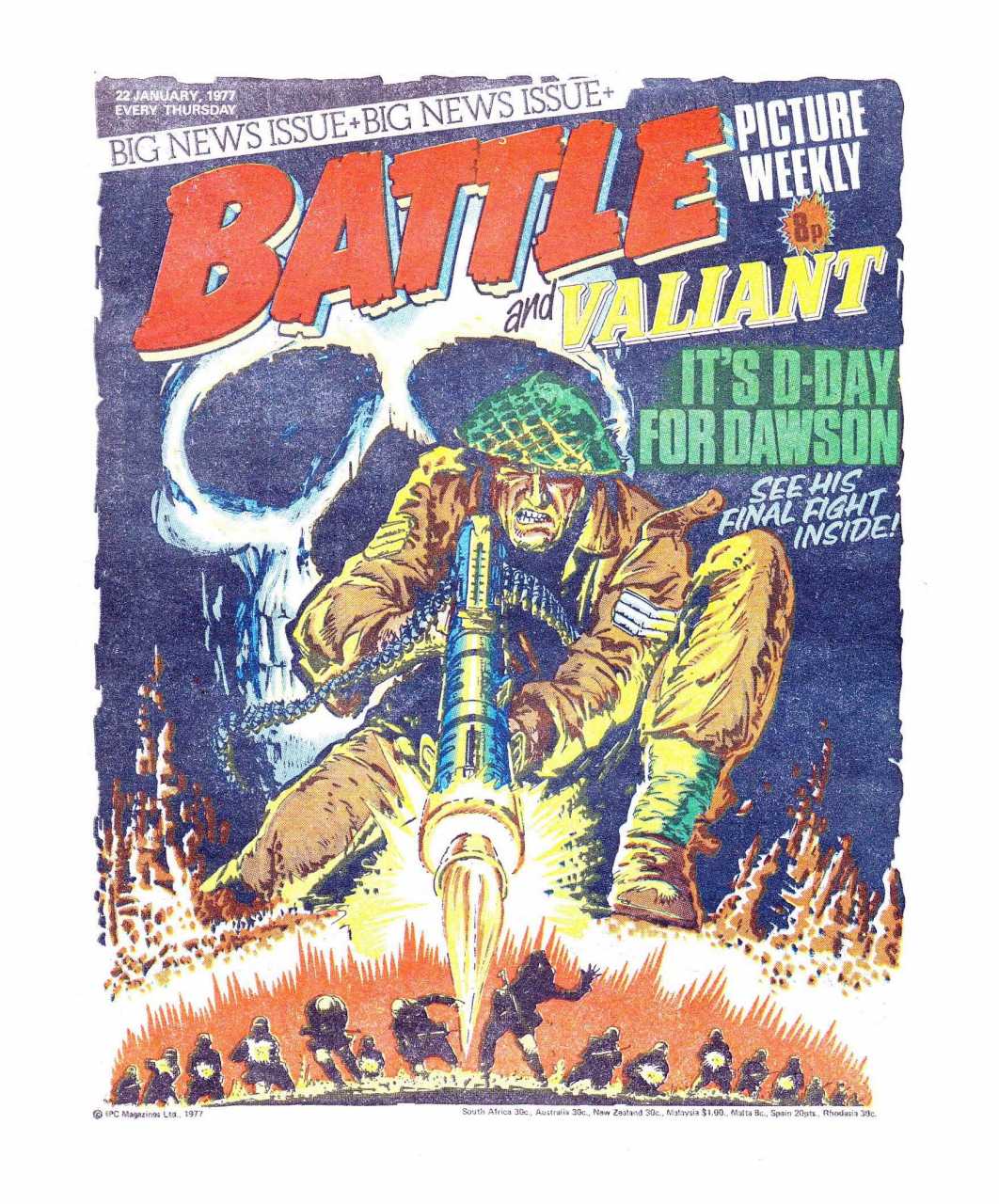 Battle was a weekly British publication for boys with stories about war. There were 664* weekly issues (from 1975 to 1988) until the title merged with Eagle (issue 306).