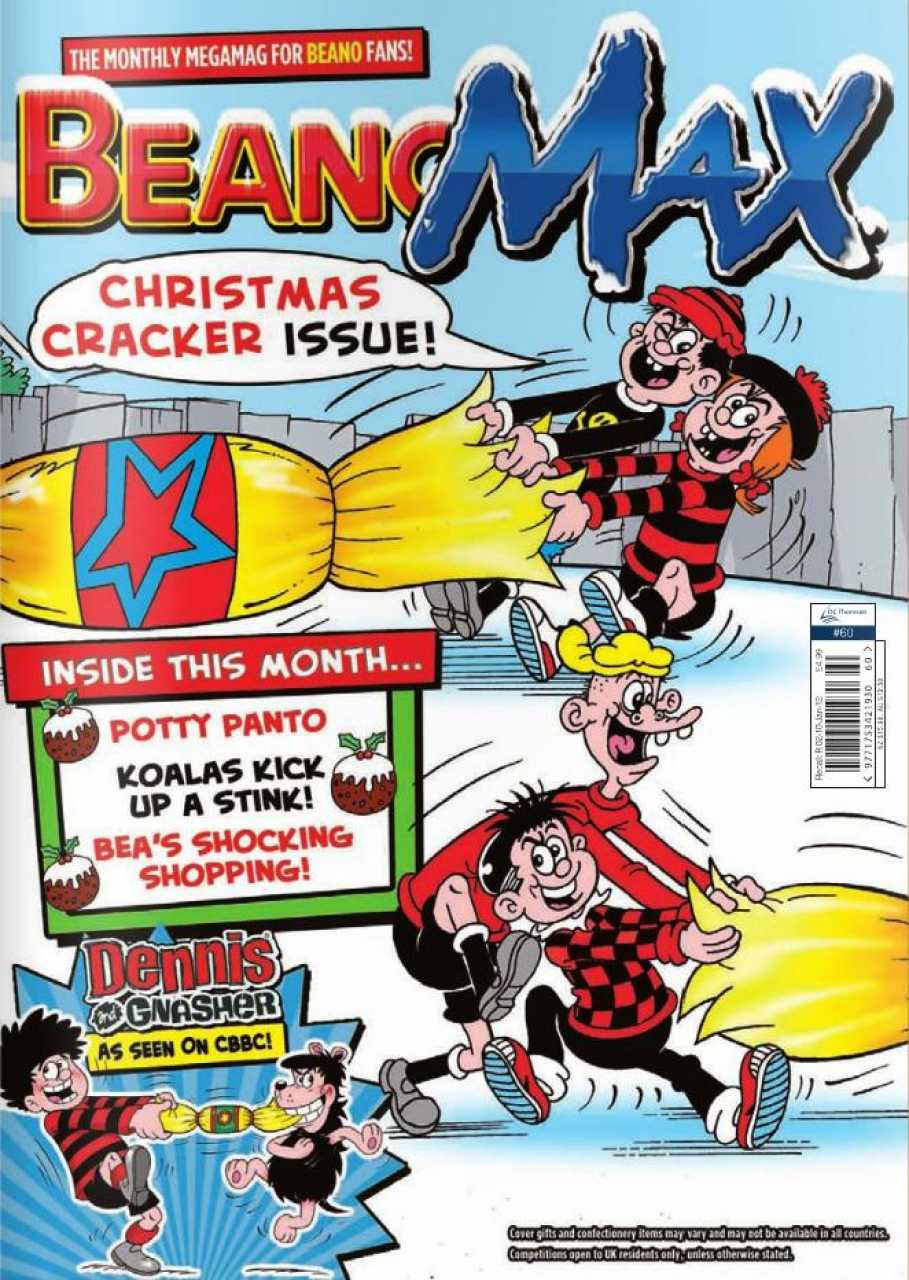 Dubbed The Beano's BIG brother, BeanoMAX was a monthly publication aimed at an older age-range than its weekly counterpart, with more feature content alongside the comic strips. In the latter half of it's run, it was home to Wallace and Gromit. It ran for 79 issues, ending in June 2013. It replaced The Beano Summer Special and was replaced by the 100% Official Dennis the Menace and Gnasher Megazine, a tie-in to the 2013 Dennis the Menace and Gnasher cartoon, which retained MAX's numbering in order to avoid retailers rejecting the new comic launch.