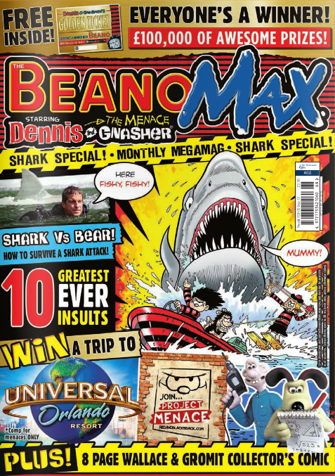 Dubbed The Beano's BIG brother, BeanoMAX was a monthly publication aimed at an older age-range than its weekly counterpart, with more feature content alongside the comic strips. In the latter half of it's run, it was home to Wallace and Gromit. It ran for 79 issues, ending in June 2013. It replaced The Beano Summer Special and was replaced by the 100% Official Dennis the Menace and Gnasher Megazine, a tie-in to the 2013 Dennis the Menace and Gnasher cartoon, which retained MAX's numbering in order to avoid retailers rejecting the new comic launch.
