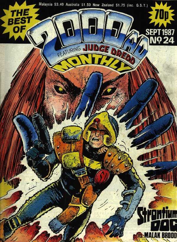 Monthly British comic reprinting the best stories from the pages of 2000AD. Cover: Carlos Ezquerra (Strontium Dog)Judge Dredd - Jimps (2000AD prog 295) (John Wagner and Alan Grant - Ron Smith)Strontium Dog - The Moses Incident (2000AD prog 335-345) (Alan ...