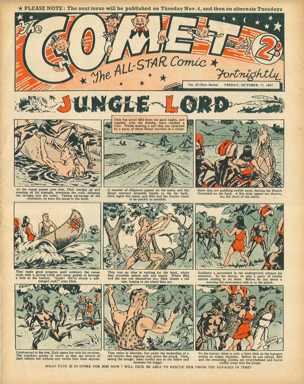 The Comet comics, published by J. B. Allen, ran from 20 September 1949 until it was taken over by Amalgamated Press in May 1949. After that it continued until it was merged with the Tiger comics in 1959.