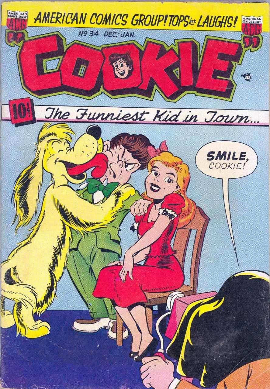 Cookie O'Toole, who may have been a little younger than Archie, was the star of the series, and his supporting cast consisted mostly of his associates in and around Harelip High School. His best friend was Jitterbuck, who, unlike Jughead, was the instigator of hare-brained schemes that would do credit to The Brain. His well-dressed, well-heeled adversary was Zoot. His lust object was Angelpuss Witherspoon (whose father was Cookie's father's boss). His teacher was Miss Bibblesnicker. The whole gang hung out at The Soda Jerkerie.