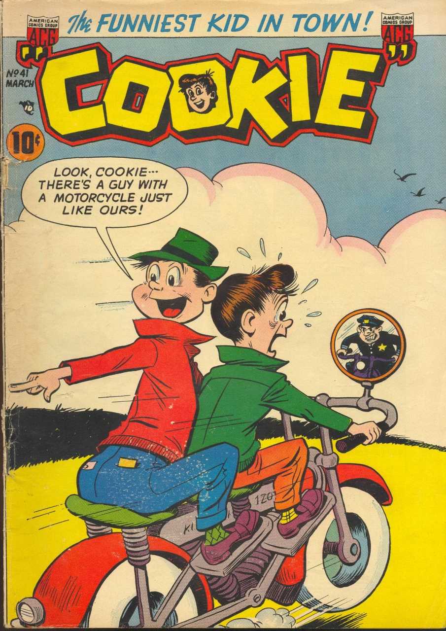 Cookie's series was nothing if not fast-paced. A simple dispute at school could grow into a labyrinth of complications involving all aspects of Cookie's life within a couple of pages, and from there escalate to byzantine proportions. Nobody had an easy time achieving even the simplest goal. Gags sometimes involved risqué elements that might easily have been censored once the Comics Code Authority came to power.
