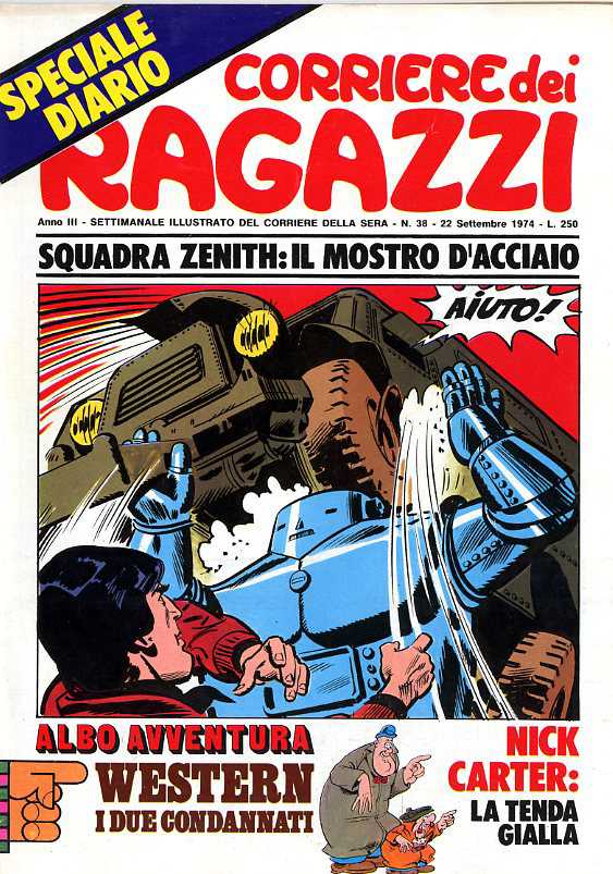 Founded in 01-1972 as the new magazine born from "Corriere dei Piccoli" with "Corriere dei Piccoli" being only a supplement, in 05-1972 "Corriere dei Piccoli" was again published by its own while "Corriere dei Ragazzi" continued as an independent volume.