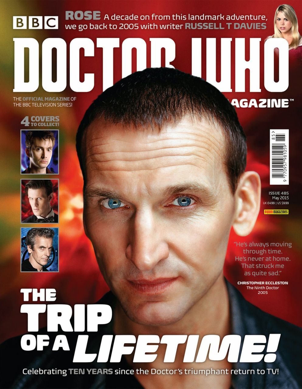 In this issue...IT'S 10 YEARS SINCE DOCTOR WHO RETURNED TO TELEVISION – AND DOCTOR WHO MAGAZINE CELEBRATES WITH FOUR VERY SPECIAL COVERS FOR ISSUE 485! Ten years after the Ninth Doctor (Christopher Eccleston) grabbed the arm of Rose Tyler (Billie Piper) ...