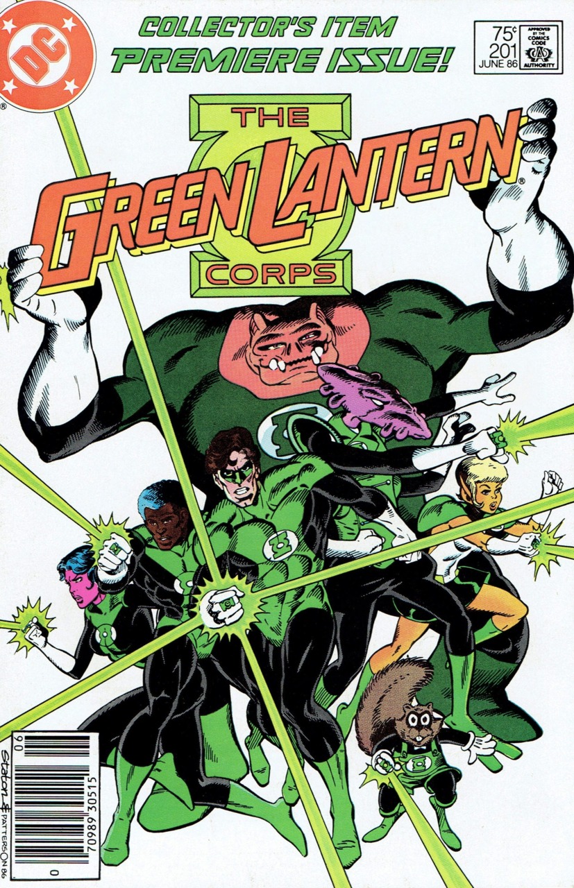 Cover by Joe Staton and Bruce Patterson."Setting up Shop" written by Steve Englehart, penciled by Joe Staton, inked by Mark Farmer, colored by Carl Gafford and lettered by L. Lois Buhalis.After the Guardians left this plane of existence, the remaining Green Lanterns split up into smaller confederations throughout the universe. Hal Jordan and John Stewart led a team of Lanterns home where they set up residence in California, forming the Green Lanterns Corps of Earth.