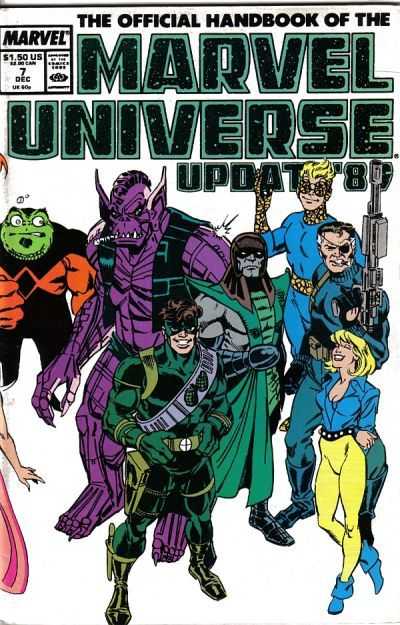 The Official Handbook of the Marvel Universe Update '89 is an eight issue series that serves as an update and addendum to the encyclopedia entries presented in the Official Handbook of the Marvel Universe Deluxe Edition. This is the third volume in the series and is the last to be presented in this comic format, the subsequent series follows a binder style approach.