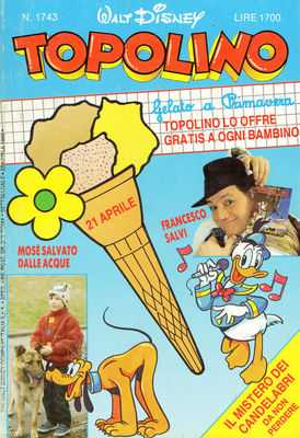 Topolino means Mickey Mouse, and is the primary Italian Disney publication. Beginning in 1949, it was originally published at a monthly rate, then twice a month, but within a few years it became a weekly comic (which it still is to this day) thus making it one of the longest-running comic book publications in history.